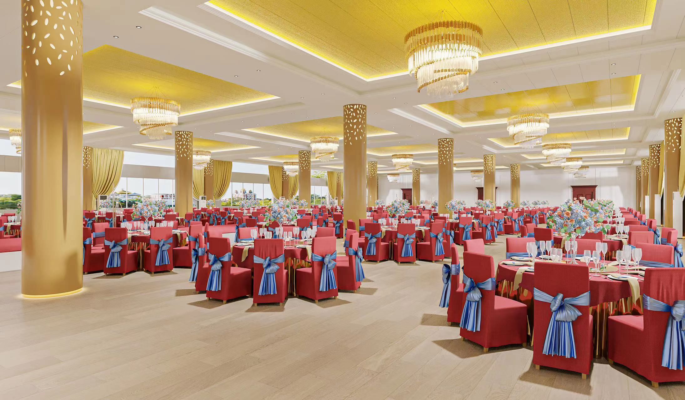 公司會議大樓第三層正在裝修施工中,設計裝修成容納800人左右的宴會大廳,為迎接疫情結束后,全廠職工聯歡而準備的金色餐廳。待到春花爛漫時,我們相聚在同發。