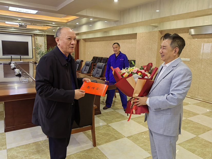 2023年4月24日,安慶市總工會主席劉克勝、市總副主席宋劍鋒來到我司慰問我司董事長、全國勞模焦發(fā)兆同志。