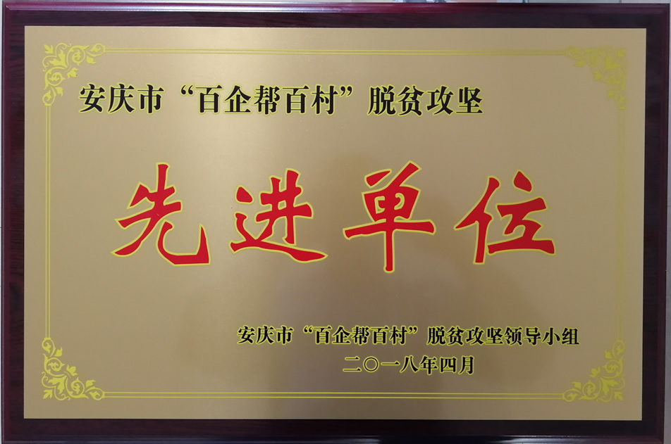 我司榮獲安慶市“百企幫百村”脫貧攻堅先進單位稱號